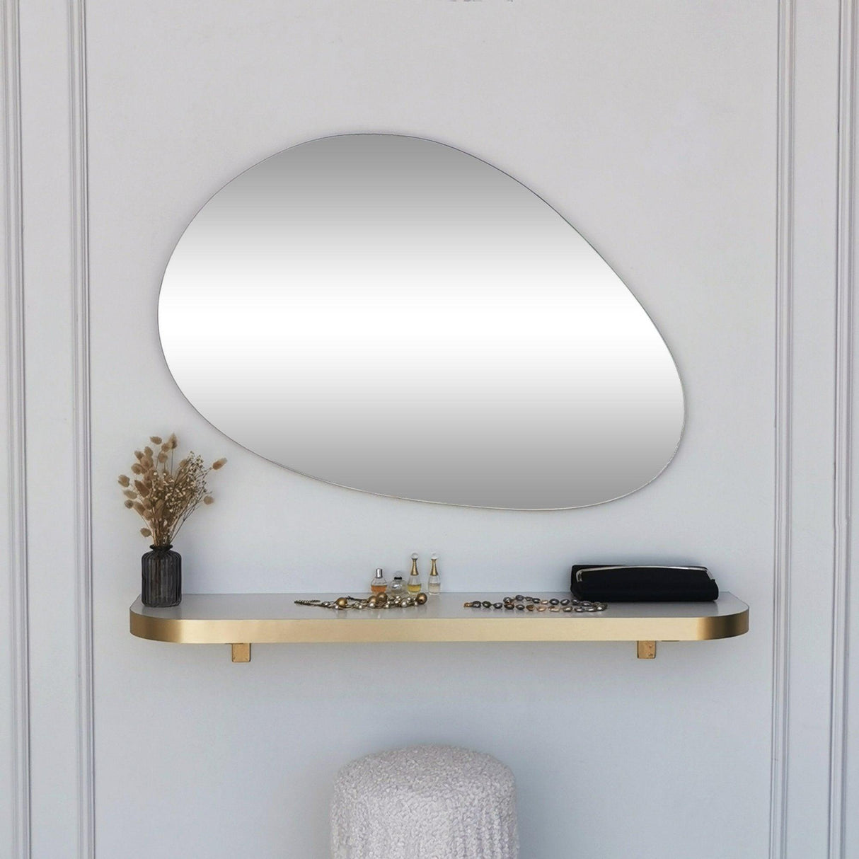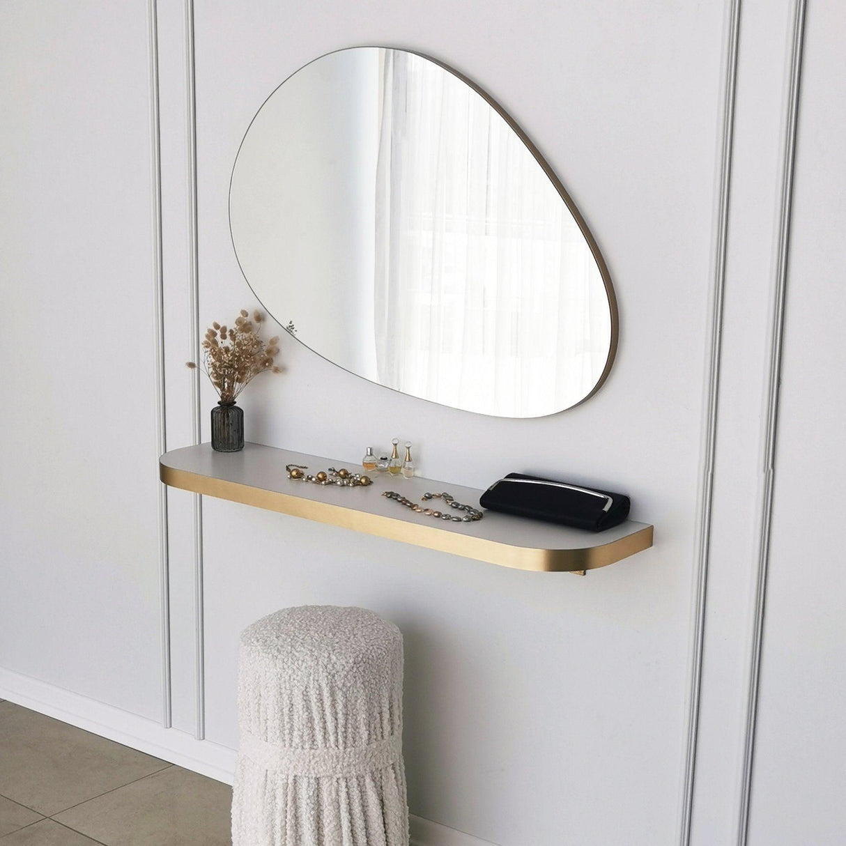 Cu o lățime de 90 cm și o înălțime de 60 cm, oglinda noastră aurie are dimensiunea perfectă pentru a face o declarație fără a vă copleși spațiul. Designul său elegant și minimalist se potrivește perfect în orice stil de interior, fie că este modern, inedit, hotelier sau scandinav. Oglinda poate fi fixată cu ușurință pe perete, permițându-vă să creați un punct focal care să vă reflecte gustul și personalitatea unică.