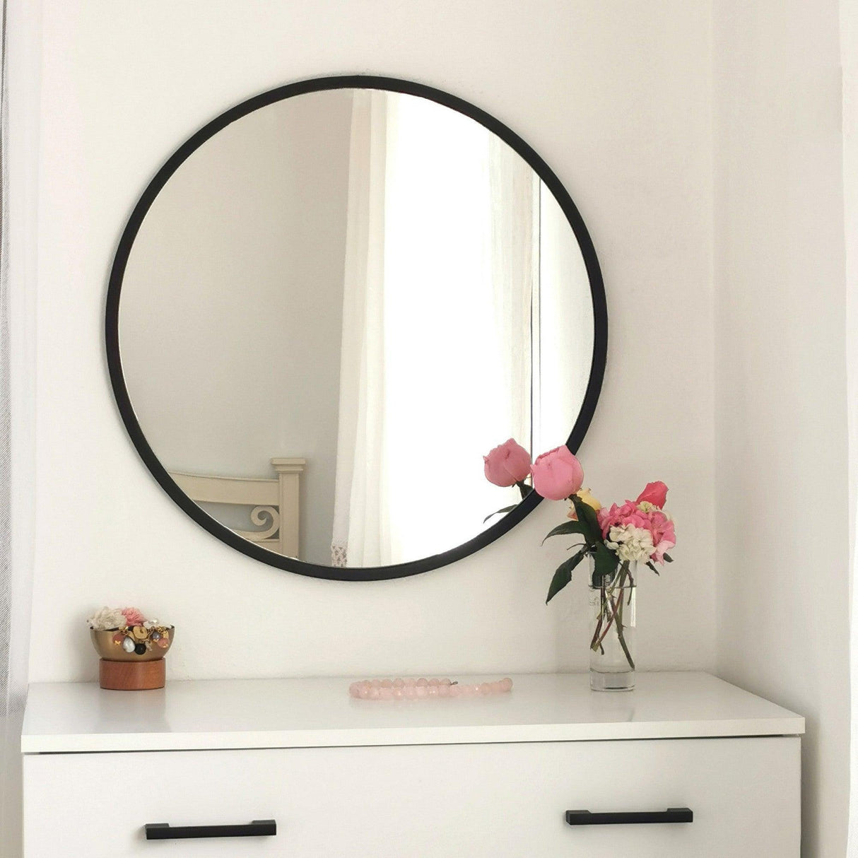 Oglindă Siyah Metal Çerçeve Yuvarlak Ayna A710, Negru, 2x60x60 cm
