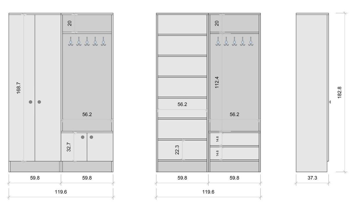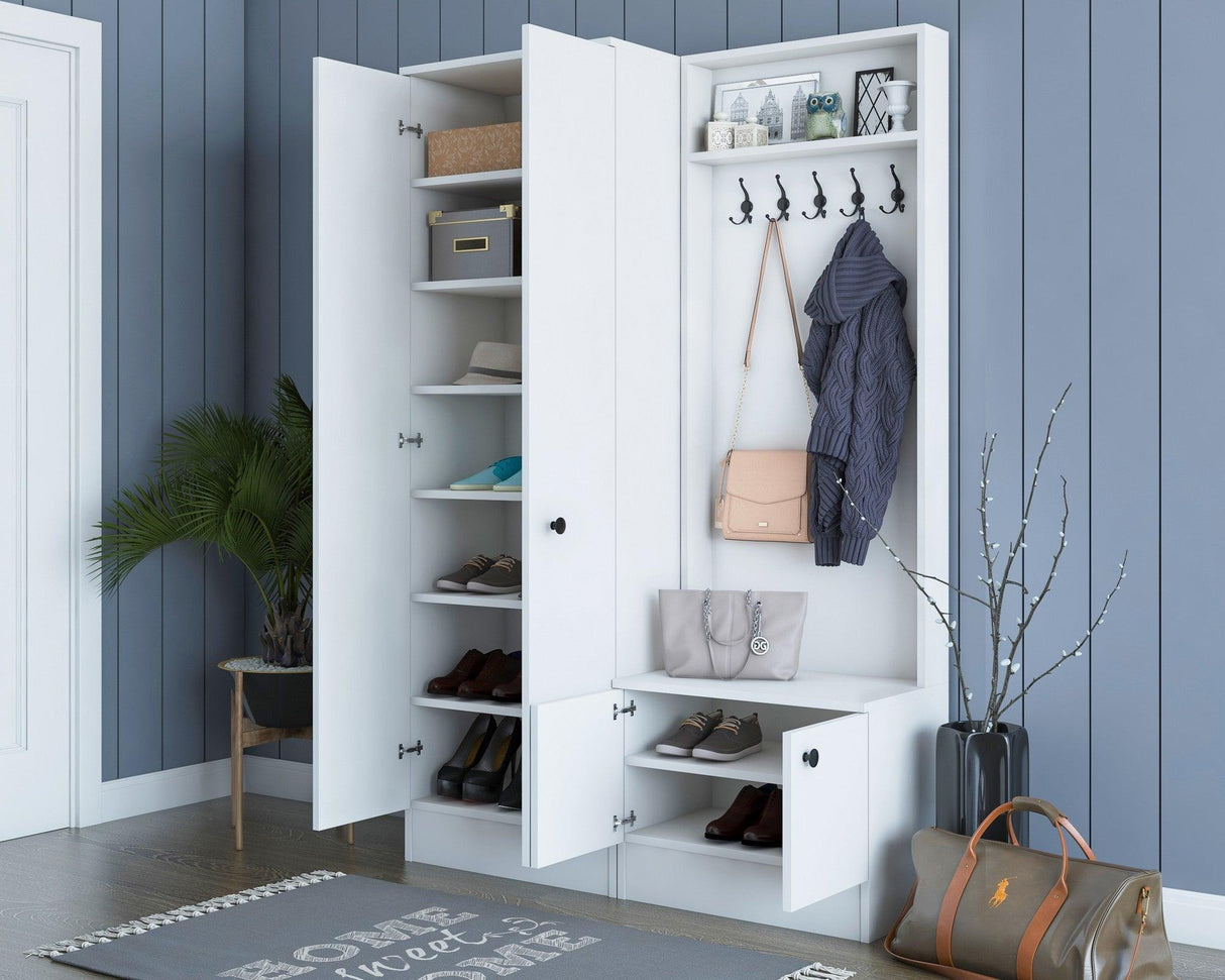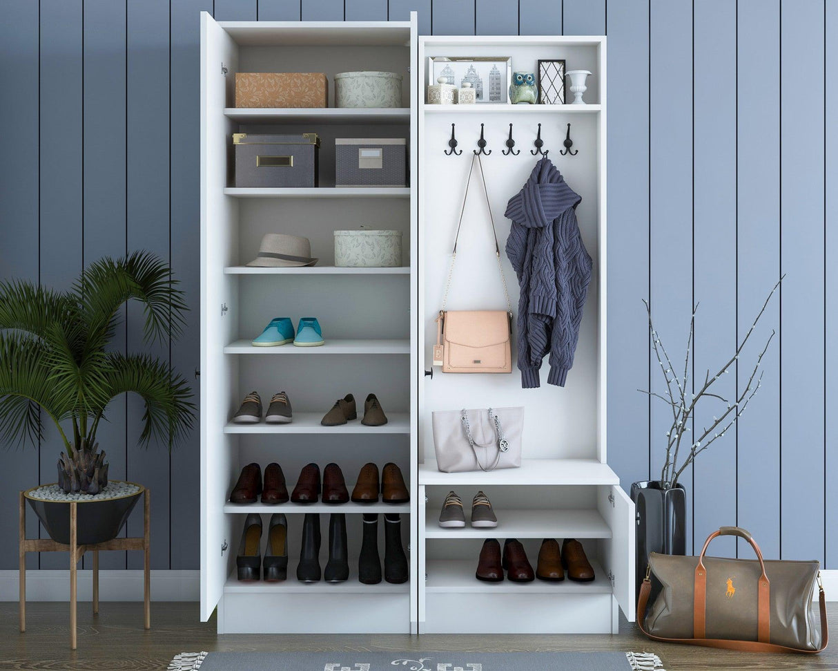 Cuier cu pantofar Belhanda cu 4 usi, Alb, 120 x 183 x 37 cm