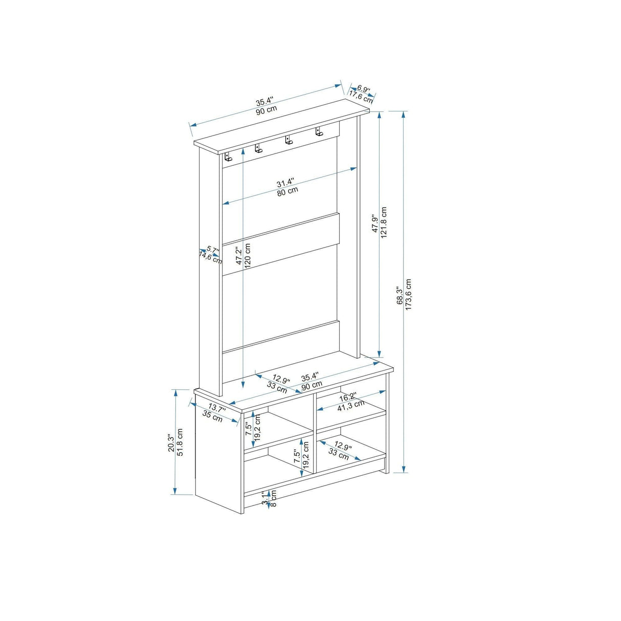 Cuier cu pantofar Napoli cu Bancuta, Stejar, 90 x 174 x 35 cm