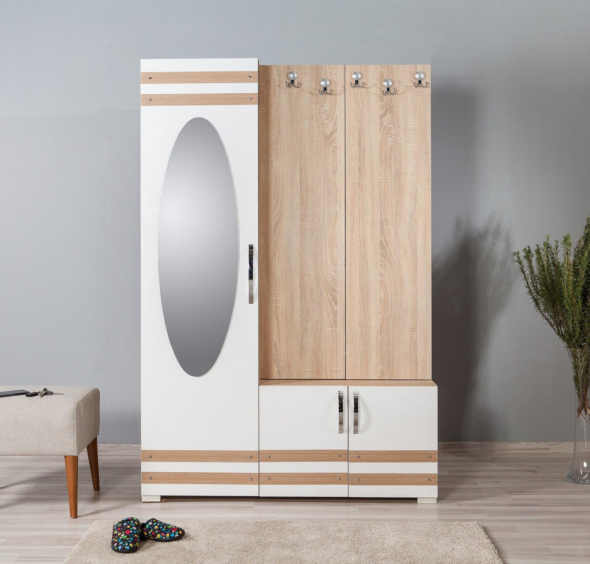 Cuier cu pantofar Sahara-200 Hall Stand, Stejar Sonoma, 195x36x125 cm