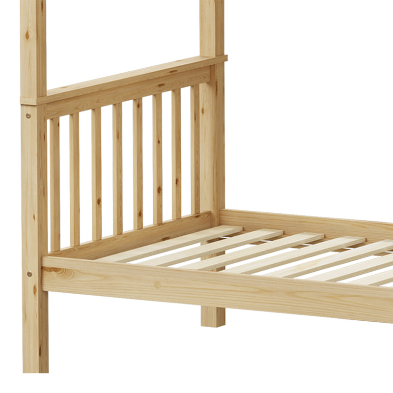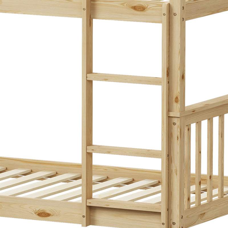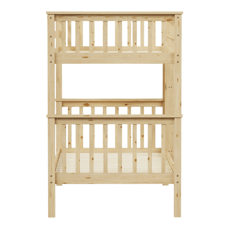 Căminul cu pat supraetajat Nani este o alegere excelentă pentru a adăuga eleganță și funcționalitate în camera copilului. Realizat din lemn de pin durabil, este perfect pentru camere mici sau familii cu mai mulți copii, oferind un spațiu distractiv și jucaus pentru cei mici. Designul modern și sigur, dotat cu scară de acces și balustrade de protecție în jurul patului de sus, face acest pat ideal pentru camera copiilor. Poate fi desfăcut în două paturi separate și este potrivit pentru o saltea de 90x190 cm (nu este inclusă). Disponibil în culoarea Naturală a lemnului, acest pat supraetajat Nani adaugă un plus de frumusețe oricărei camere de copii.