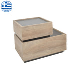 Noptiera Elencia este aici pentru cei care caută o estetică înaltă și un design industrial modern în spațiul lor. Este conceput pentru a se potrivi perfect în orice mediu, îmbunătățind decorul general. Specificații tehnice: Cadru: Construit din PAL cu un finisaj melaminat de înaltă calitate, care asigură durabilitatea în timp. Versatilitate: Designul său Multicolorfuncțional vă permite să îl plasați așa cum doriți. Culoare: Oferit în stejar cu accente Gri. Meșteșuguri de calitate: Un produs de înaltă calitate fabricat în Grecia.Dimensiuni produs:Dimensiuni generale: Lungime: 60 cm Lățime: 40 cm Înălțime: 46,5 cmDimensiuni detaliate:Piesă mare: Lungime: 60 cm Lățime: 40 cm Înălțime: 26 cmPiesă mică: Lungime : 40 cm Latime: 40 cm Inaltime: 20,5 cmInformații despre material: Plăci aglomerate: Cunoscută ca PAL, plăci aglomerate este un material lemnos compozit realizat din bucăți mici de lemn, de obicei pin sau brad, legate între ele la presiune și temperatură ridicată folosind rășini. Este utilizat pe scară largă în fabricarea de mobilier, suprafețe interioare și aplicații structurale. Fabricat din materiale reciclate, este rezistent la îndoire, abraziune și alte solicitări fizice. Melamina: LPB (Melamina de joasă presiune) este un material sintetic utilizat pe scară largă în tratarea suprafeței plăcilor aglomerate în fabricarea de mobilier datorită durabilității și ușurinței de întreținere. Se aplică pe substraturi precum MDF (plăci de fibre de densitate medie) sau placaj OSB pentru a produce suprafețe durabile. Evitați utilizarea excesivă a apei și asigurați-vă că suprafața rămâne uscată după curățare. Melamina: Unul dintre cele mai cunoscute materiale în designul mobilierului, melamina necesită înGrijire blândă. Pentru a îndepărta petele de pe suprafață, utilizați o cârpă moale cu apă călduță și săpun delicat. Ștergeți ușor suprafața până când pata este îndepărtată. Melamina este sensibilă la umiditate, de aceea este important să o protejați de apă.Note: Produsul se livrează asamblat în ambalaj din fabrică. Nuanța de culoare a produsului poate diferi ușor de reprezentarea fotografică de pe ecran.