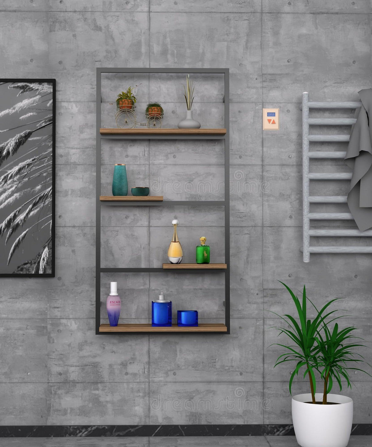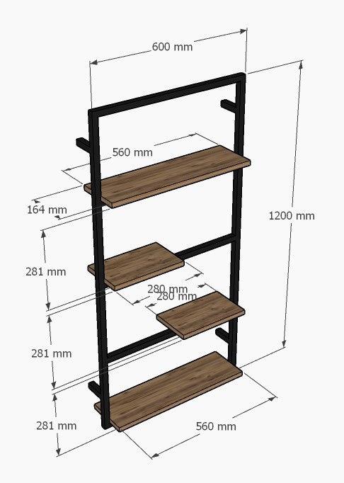 Raft de perete Bako Cadru Metal, 4 Rafturi, Stejar, 60 x 120 x 17 cm