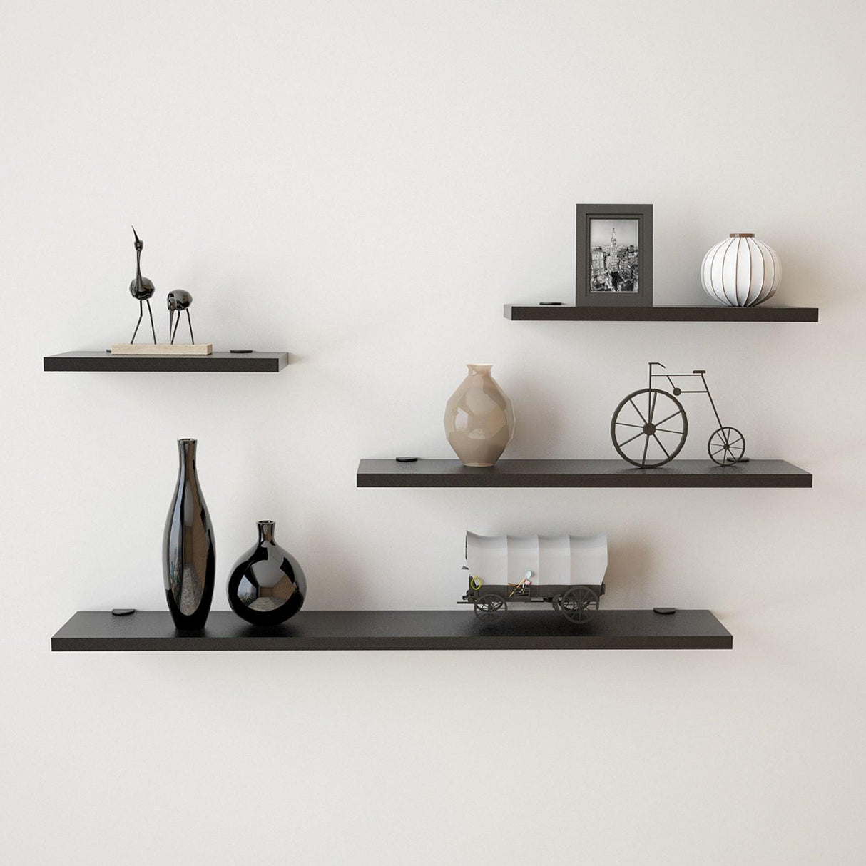 Raft de perete Nuella 4 bucati, Negru, 90 x 15 - 60 x 15 - 40 x 15 - 30 x 15 cm