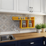 Raft de perete Pare Bucatarie, Alb - Stejar - Galben - Gri, 72x37x18 cm