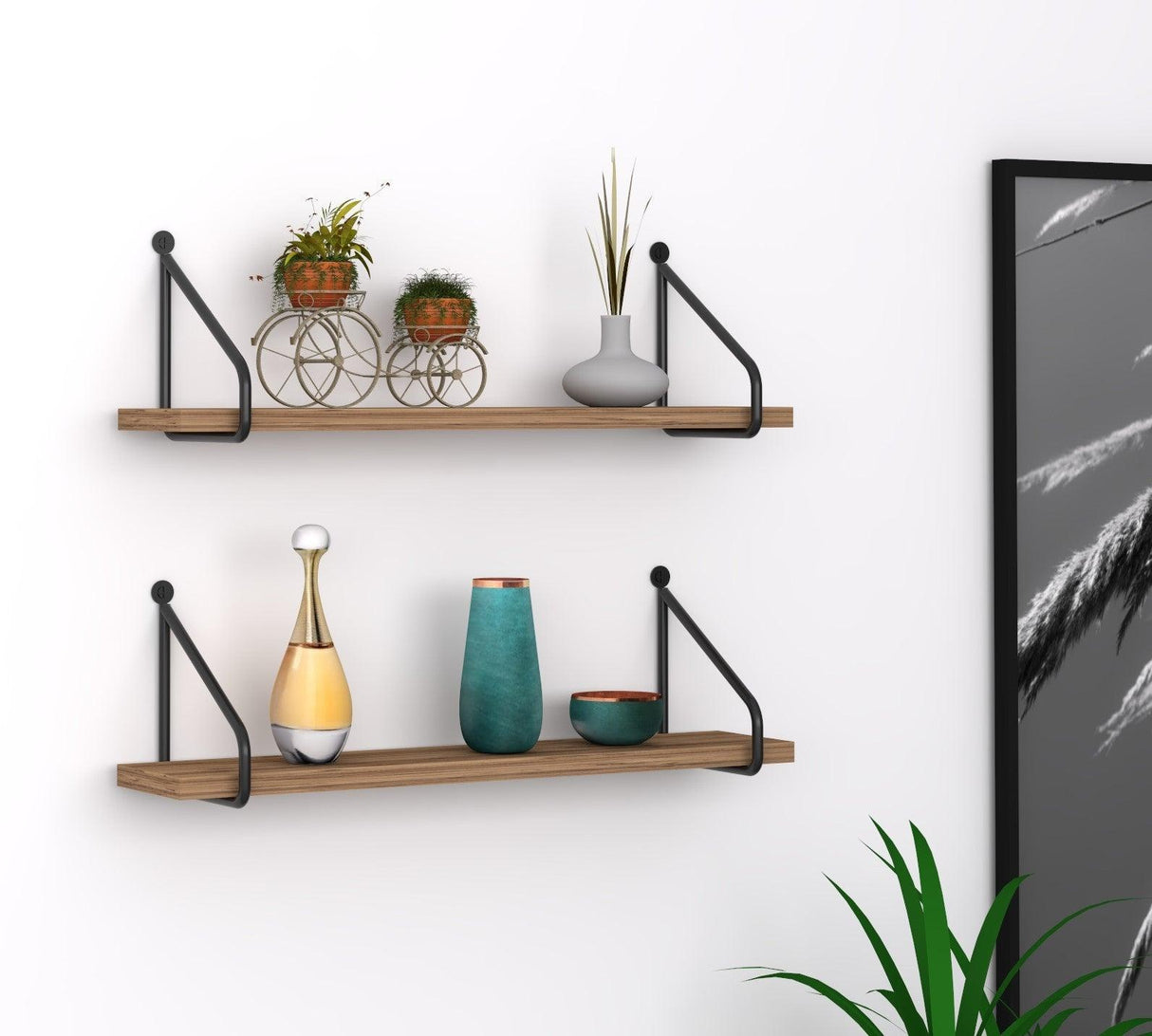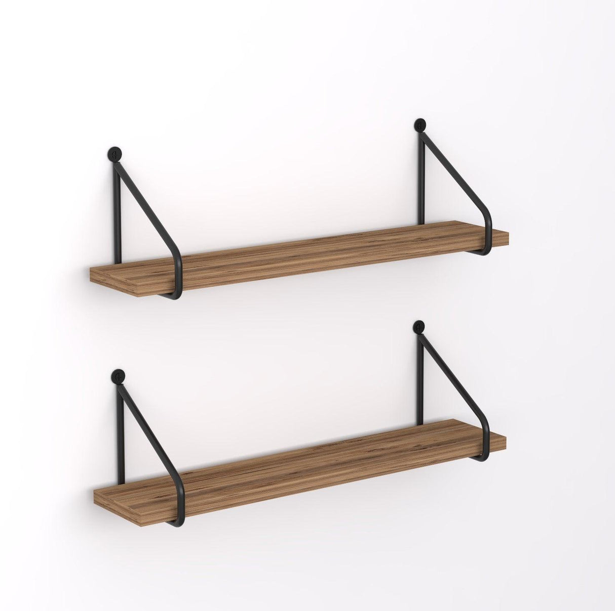 Raft de perete Reco, 2 Rafturi, Stejar, 60 x 2 x 12 cm