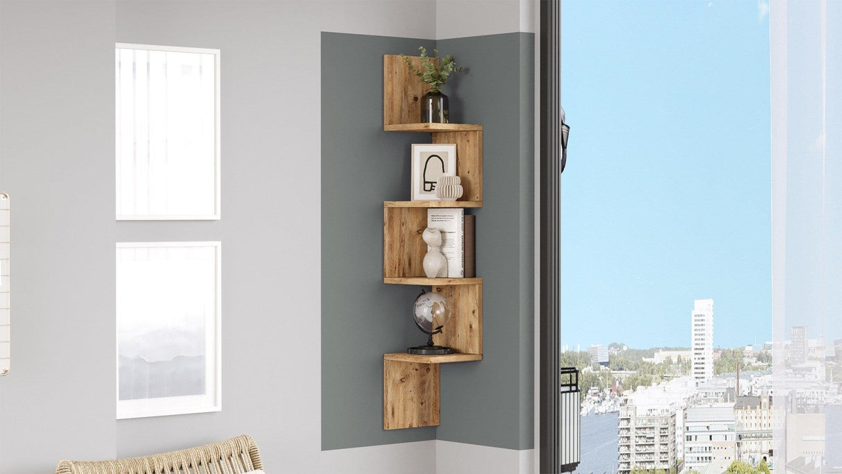 Raft de perete Vigora, Alb - Gri - Stejar, 22 x 118 x 22 cm