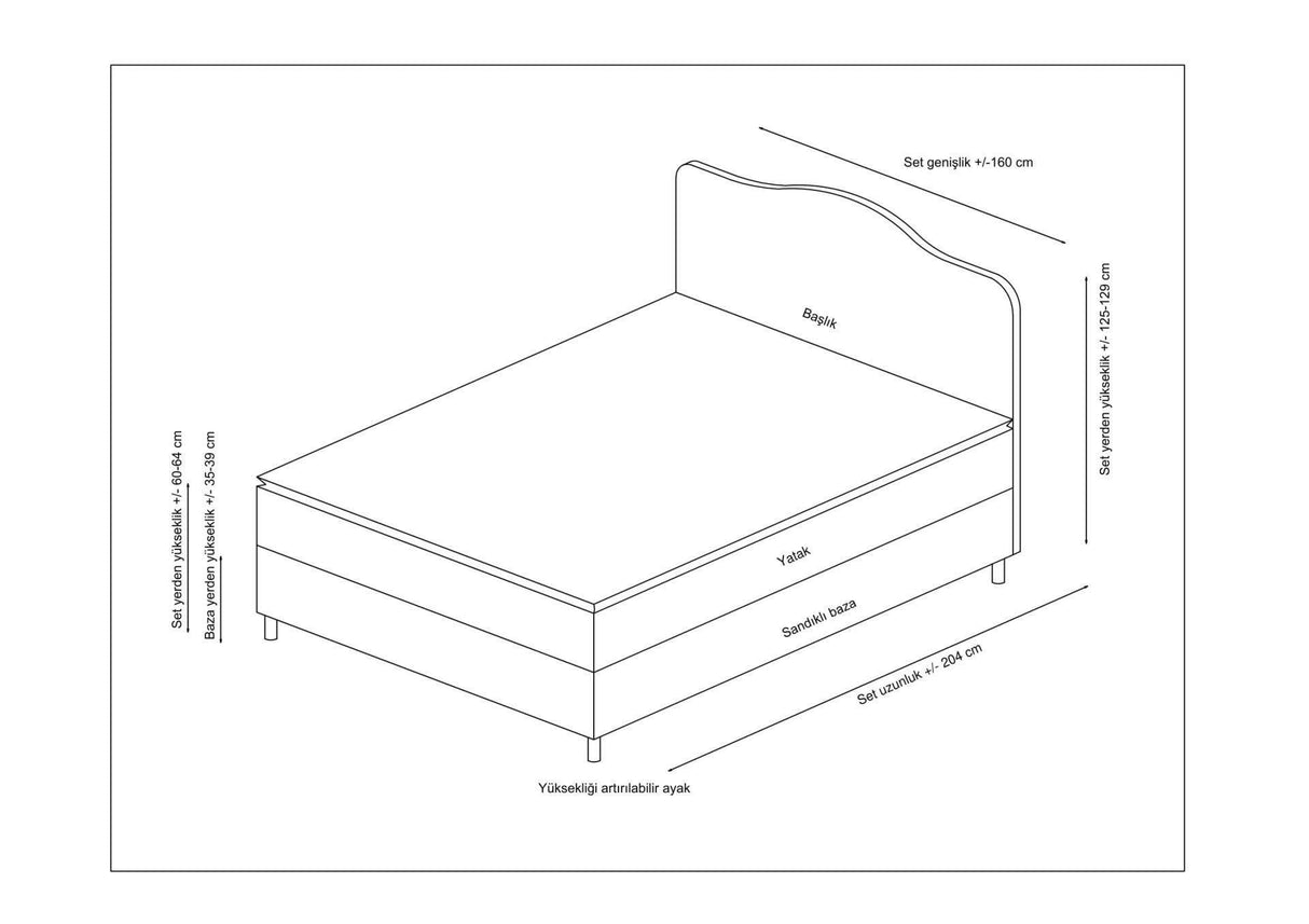 Saltea dublă, bază și tăblie Vassi Set, Gri, 150x125x200 cm