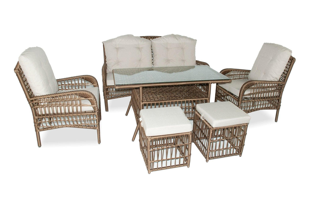 Set De Lounge De Grădină Lady Pouffe, Crem, 6 Piese