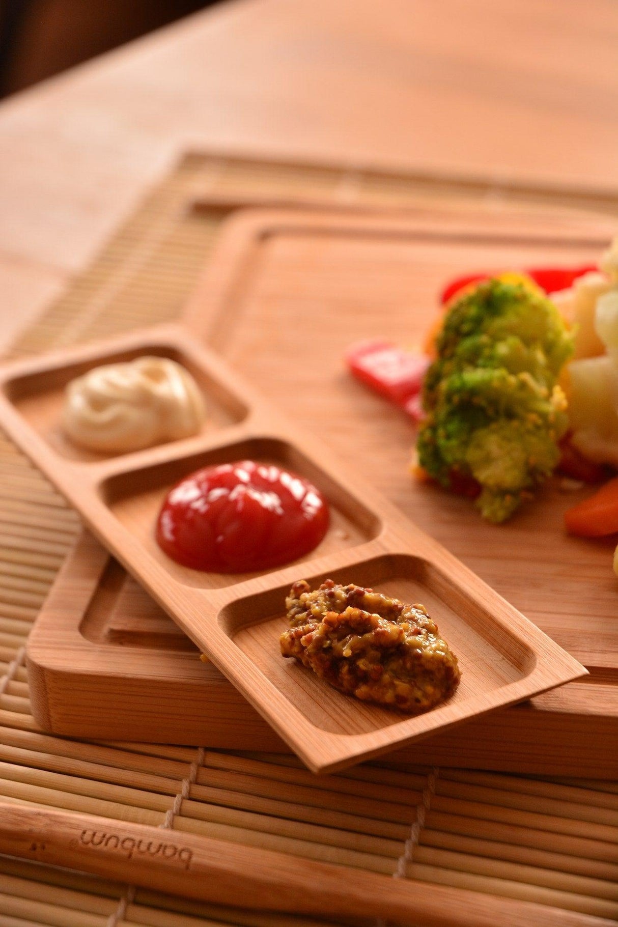 Set farfurii cu sos de bambus Almeria 3, Nuc, 1.5x6x18 cm