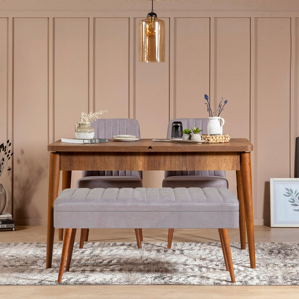Set masă și scaune extensibile (4 bucăți) Vina 0701 - 3 - Anthracite, Atlantic Extendable Dining Table & Chairs Set 4, Nuc, 77x75x120 cm