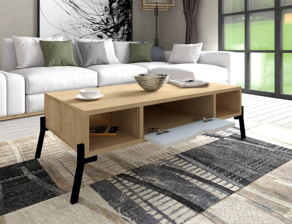 Set Mobila Sufragerie Siena, Stejar, 3 piese, Comoda Tv - Biblioteca - Masuta de Cafea