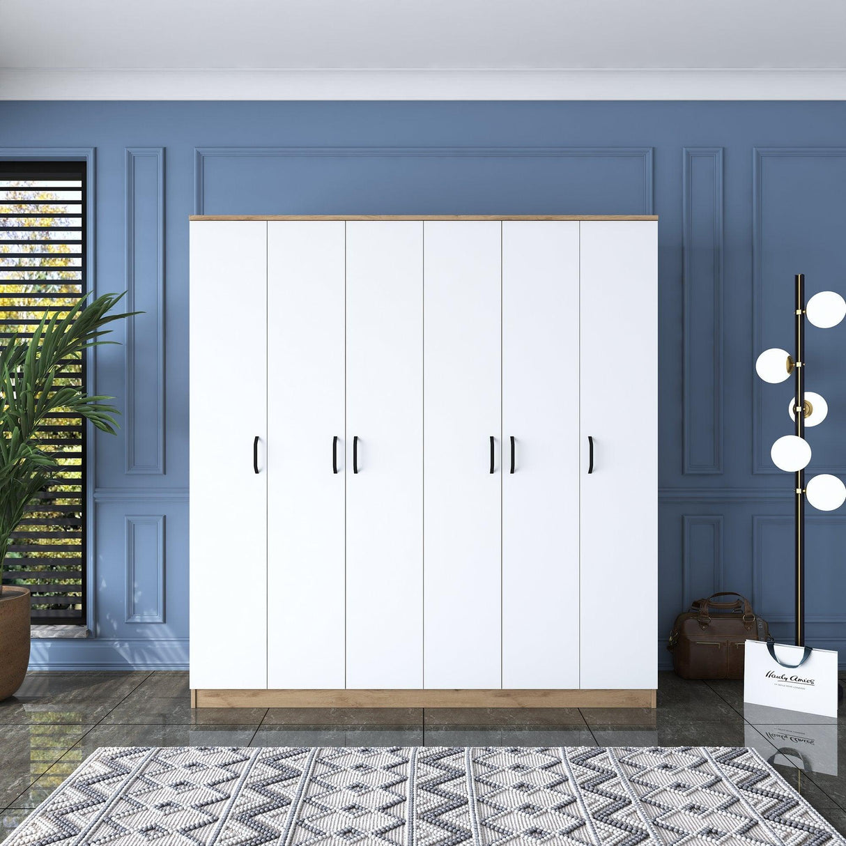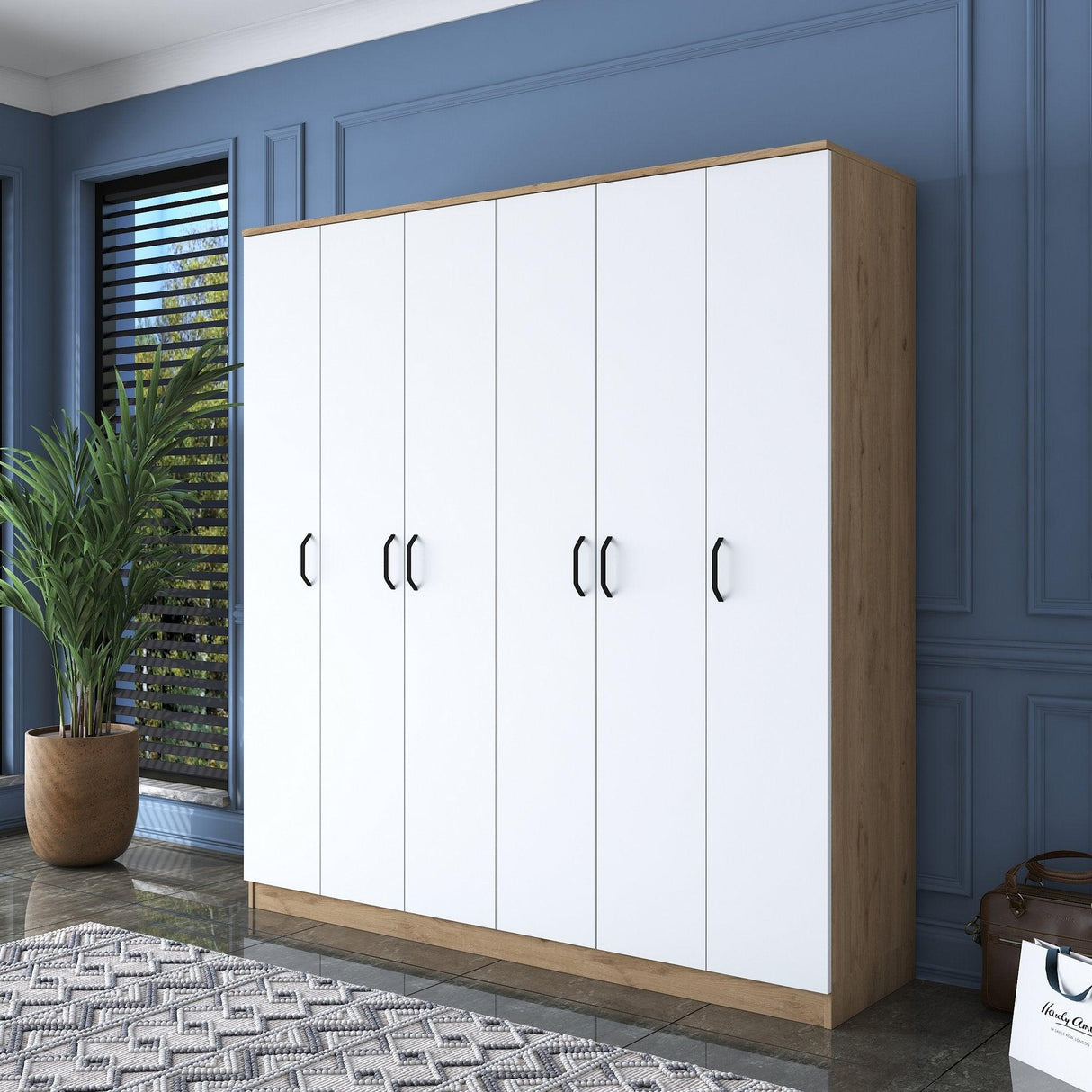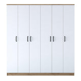 Dulap Haine Gustavo 6 usi, Alb - Nuc, 180 x 191 x 47 cm