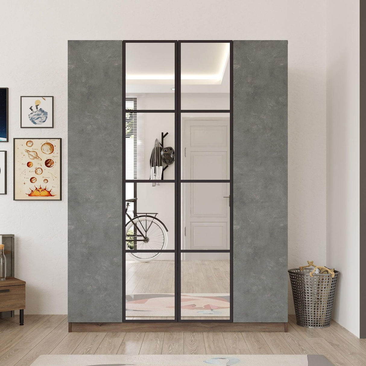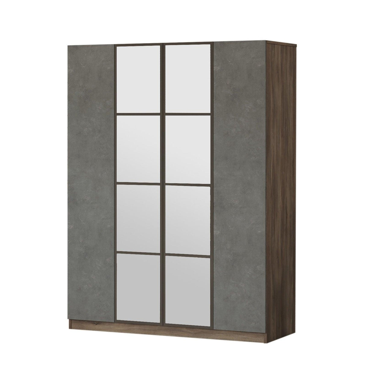 Dulap Haine Omer 4 usi cu oglinda , Gri - Maro, 139 x 184 x 50 cm